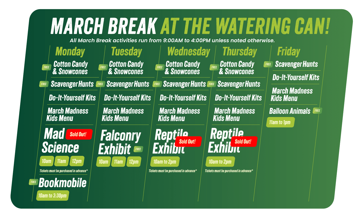 Welcome to the March Break at the Watering Can! Visit us from 9:00am to 4:00pm, March 16th – 20th, 2026 in Vineland.