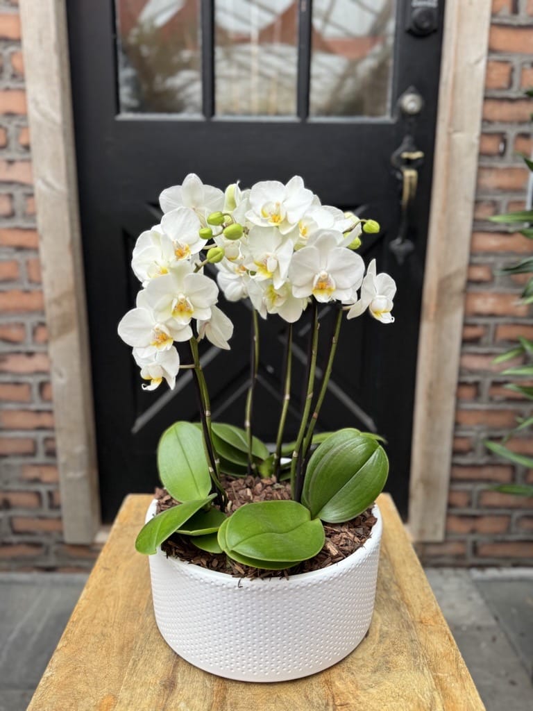 These luscious arrangements feature a variety of premium orchids that grow together to form distinguished and beautiful ecospheres. Each planter features an elaborate display of hand-selected orchids in a beautiful ceramic bowl.