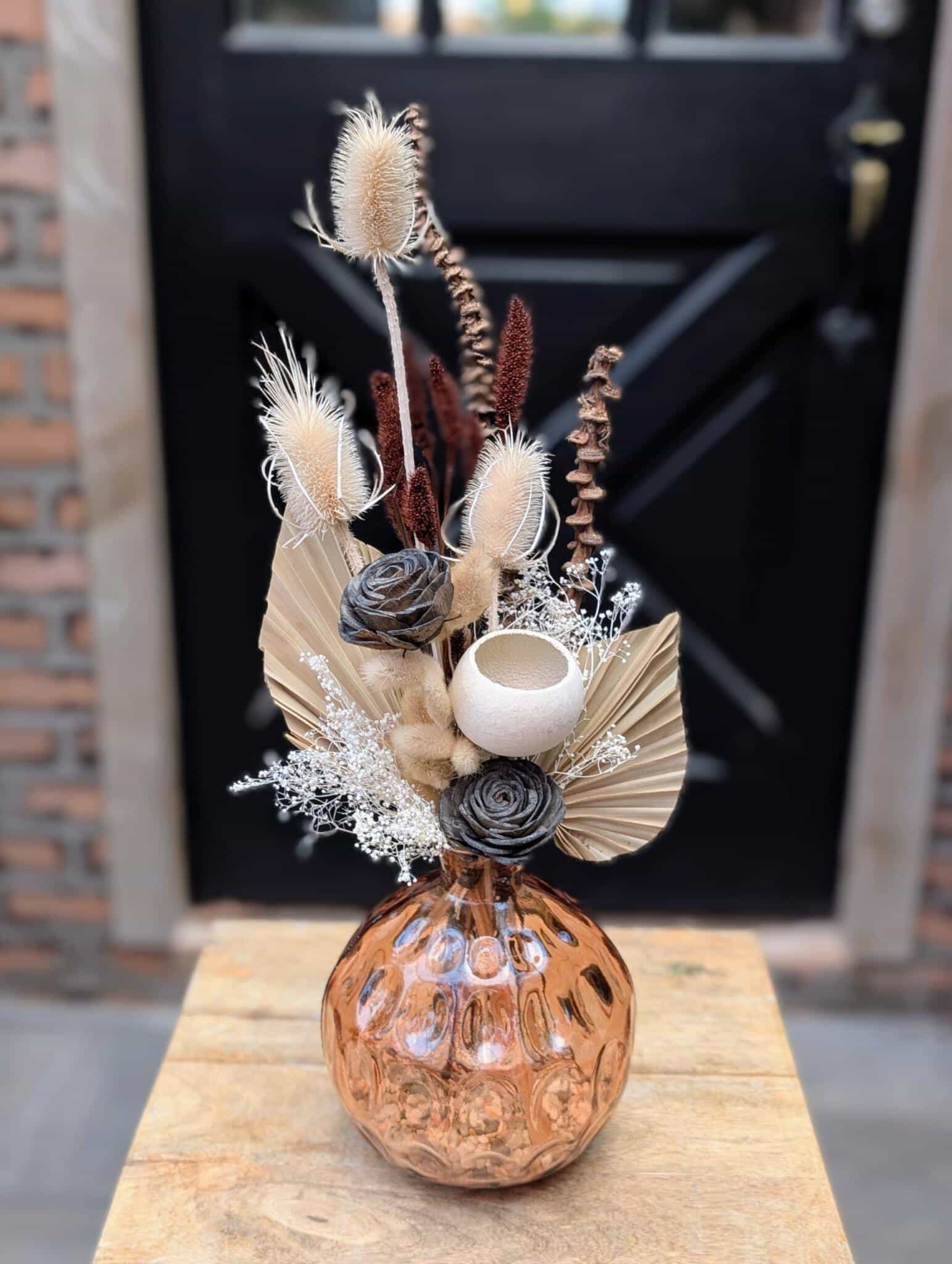- a sculptural dries arrangement inspired by sandy tones and natural textures