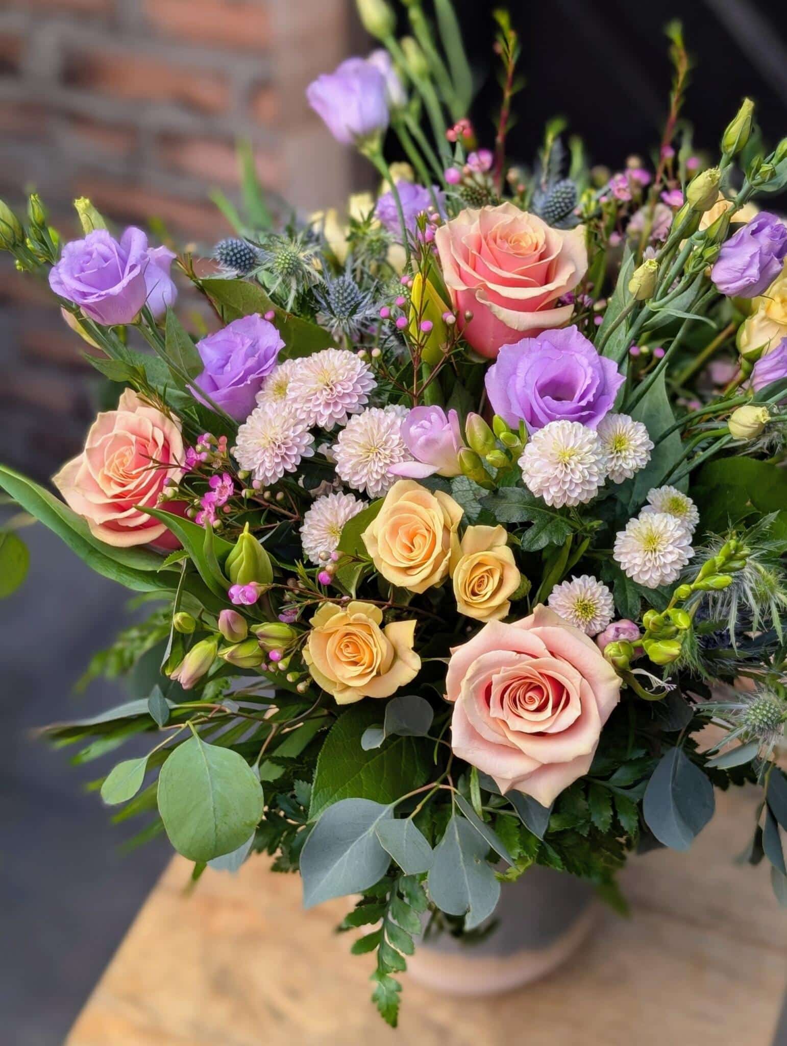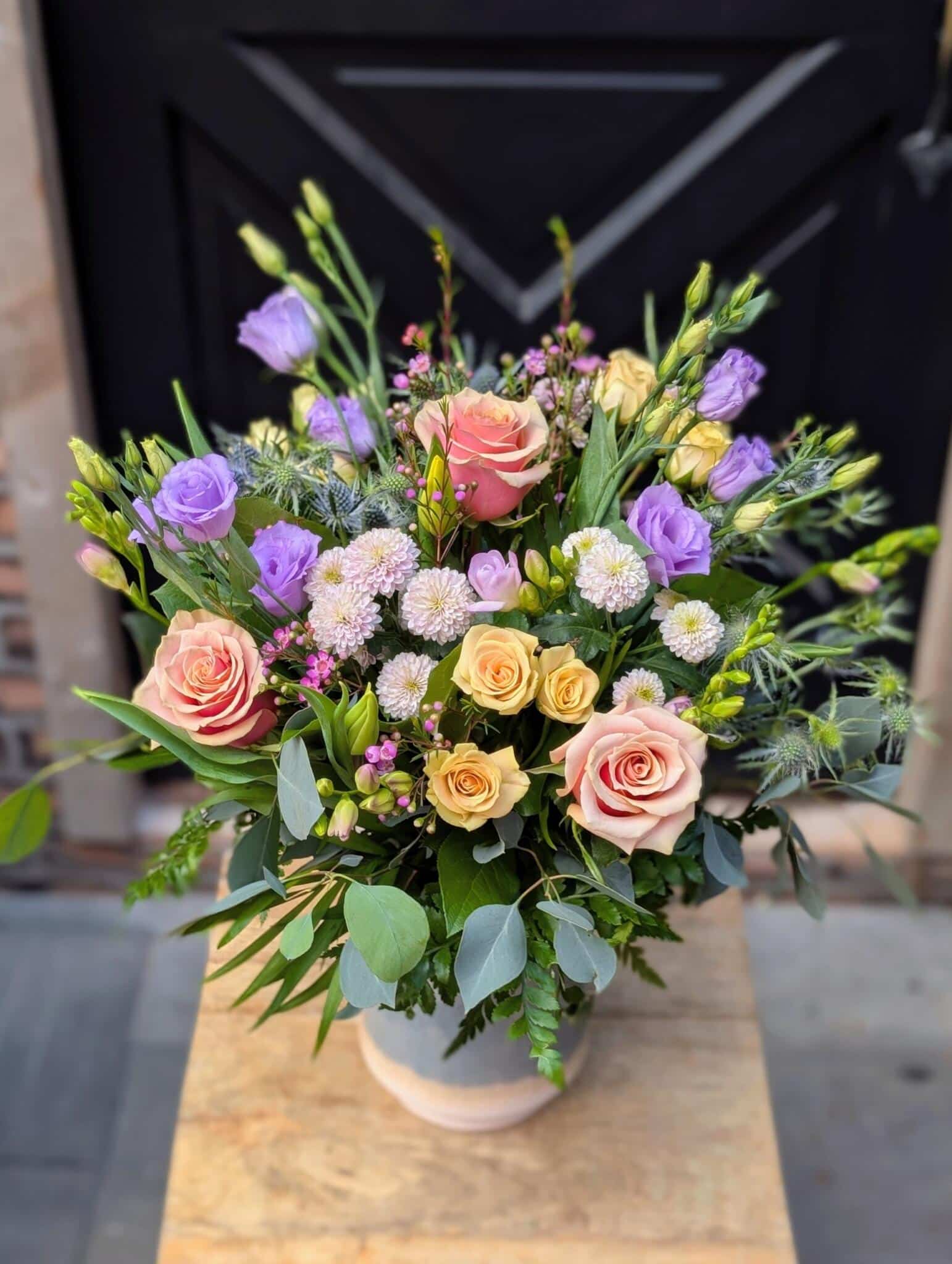 - a garden inspired hand-tied bouquet, beautifully set in a ceramic vase