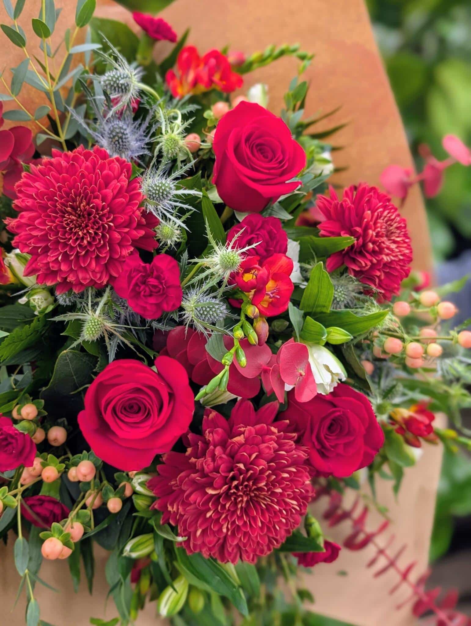 - A radiant collection of red blooms, including locally grown Niagara freesia