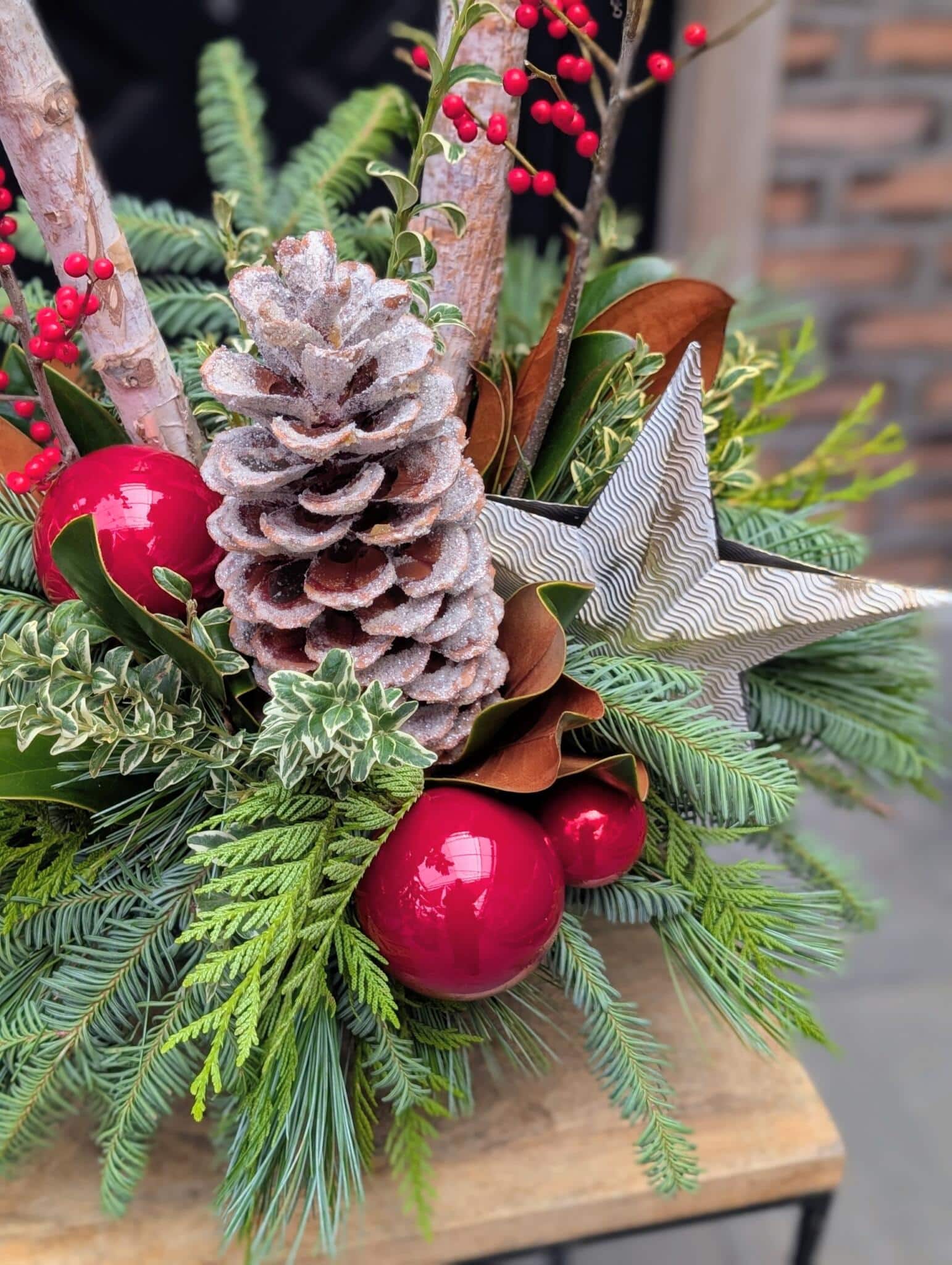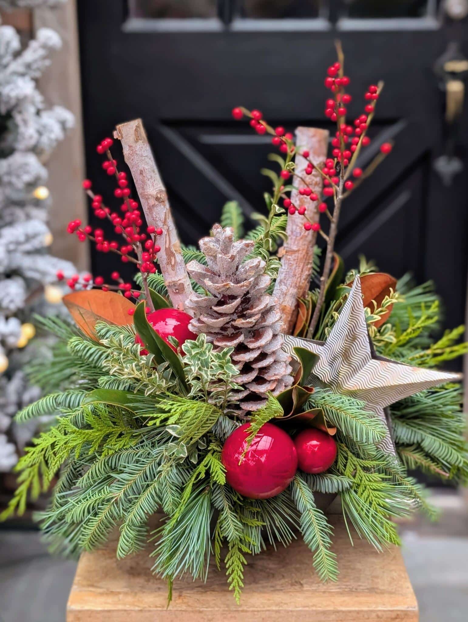 A rustic, forest inspired centerpiece with a classic Christmas charm!