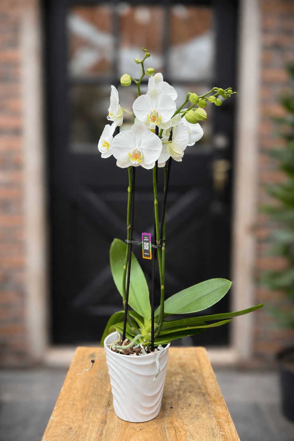 This orchid’s impressive height and lavish blooms command an audience. With it’s proud petals and radiant colours, this orchid exudes a blend of stature and sophistication that will transform your entrance, staircase or side table into a luxurious retreat. Orchid comes with white ceramic.