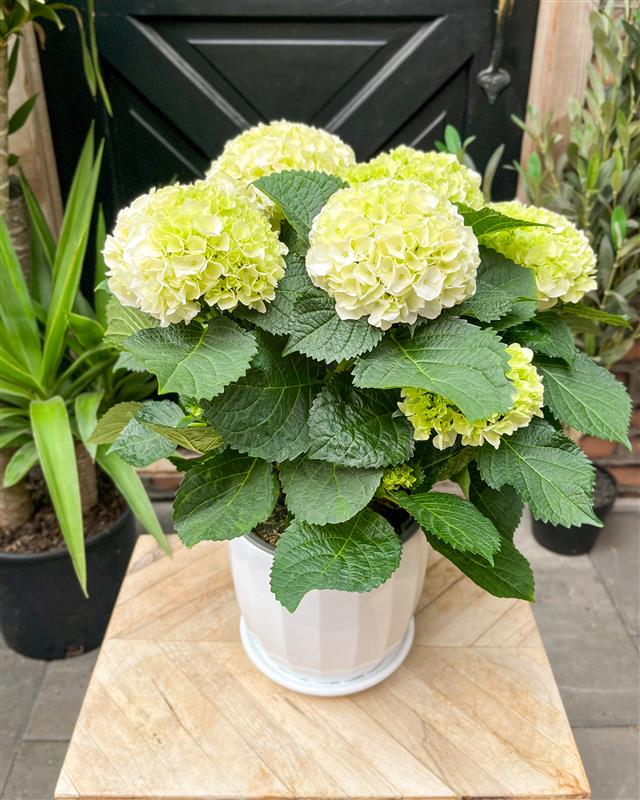 Place in bright, indirect light. Keep the soil lightly moist and avoid letting it dry out completely. Water when the top of the soil begins to feel dry. Hydrangeas enjoy cooler indoor temperatures and will last longer when kept away from direct heat or drafts.
