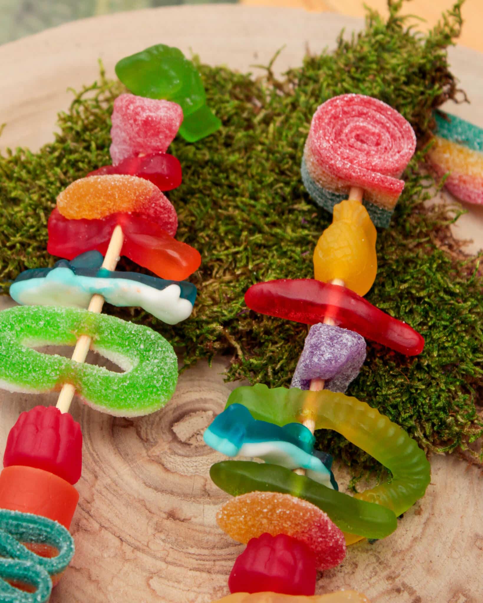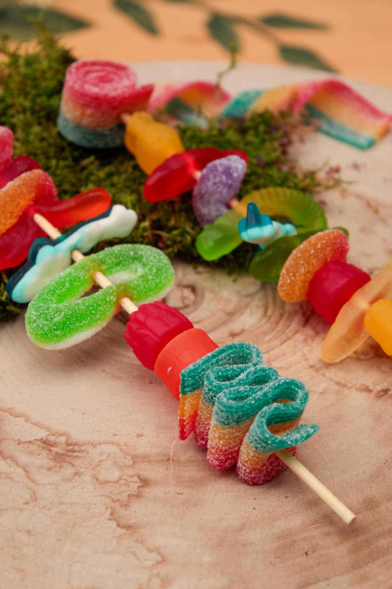 Each kit comes with two skewers that you will assemble with an assortment of colourful sweet and sour candies, perfect for building your own tasty creations.