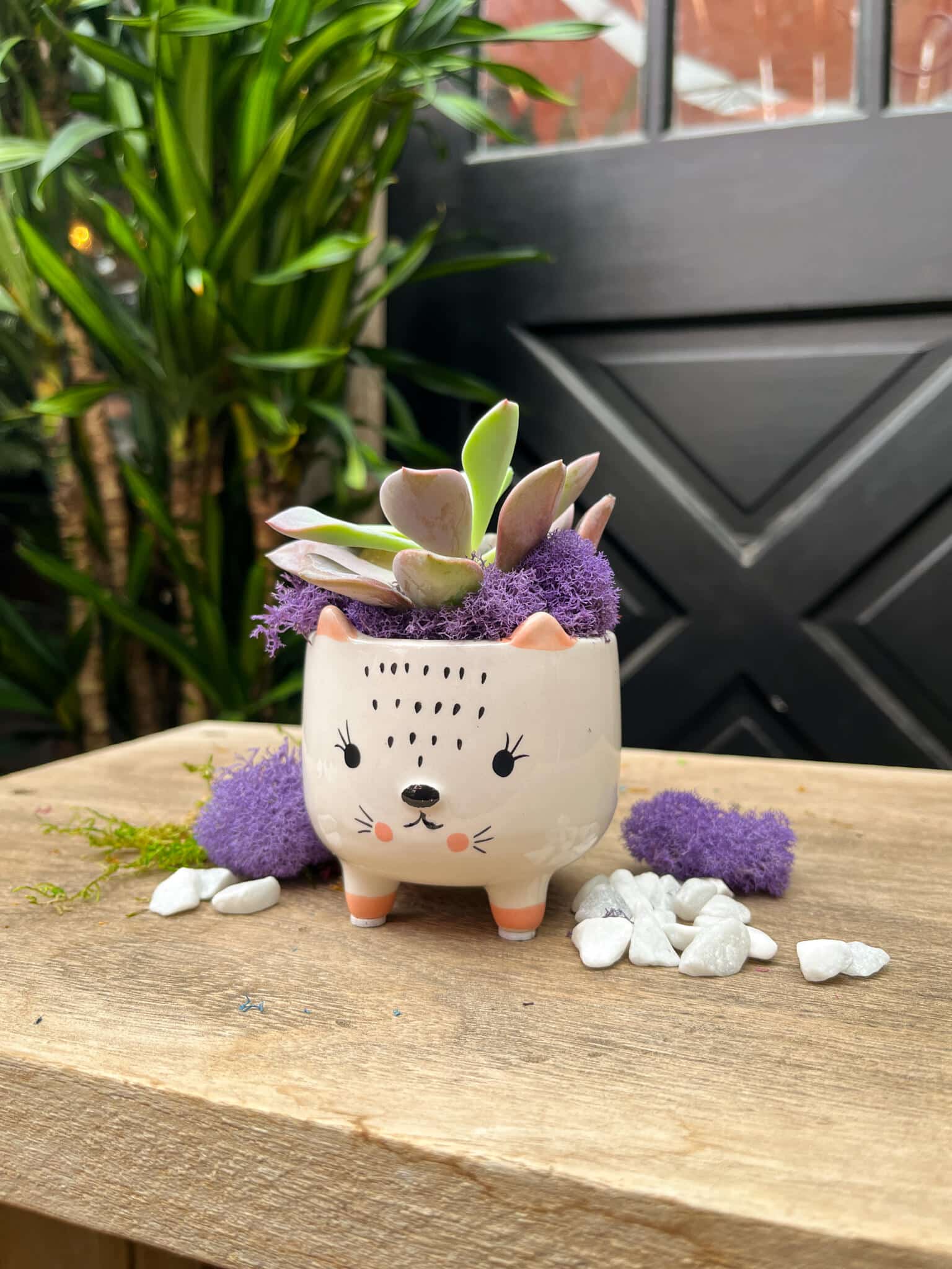 This adorable cat-shaped pot cradles a cheerful succulent, bringing a touch of whiskered charm and greenery to any home. It’s the cutest way to keep your plants company while adding a playful pop of fun to your space!