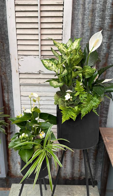 You’ll design two houseplant arrangements in modern textured containers on stands.