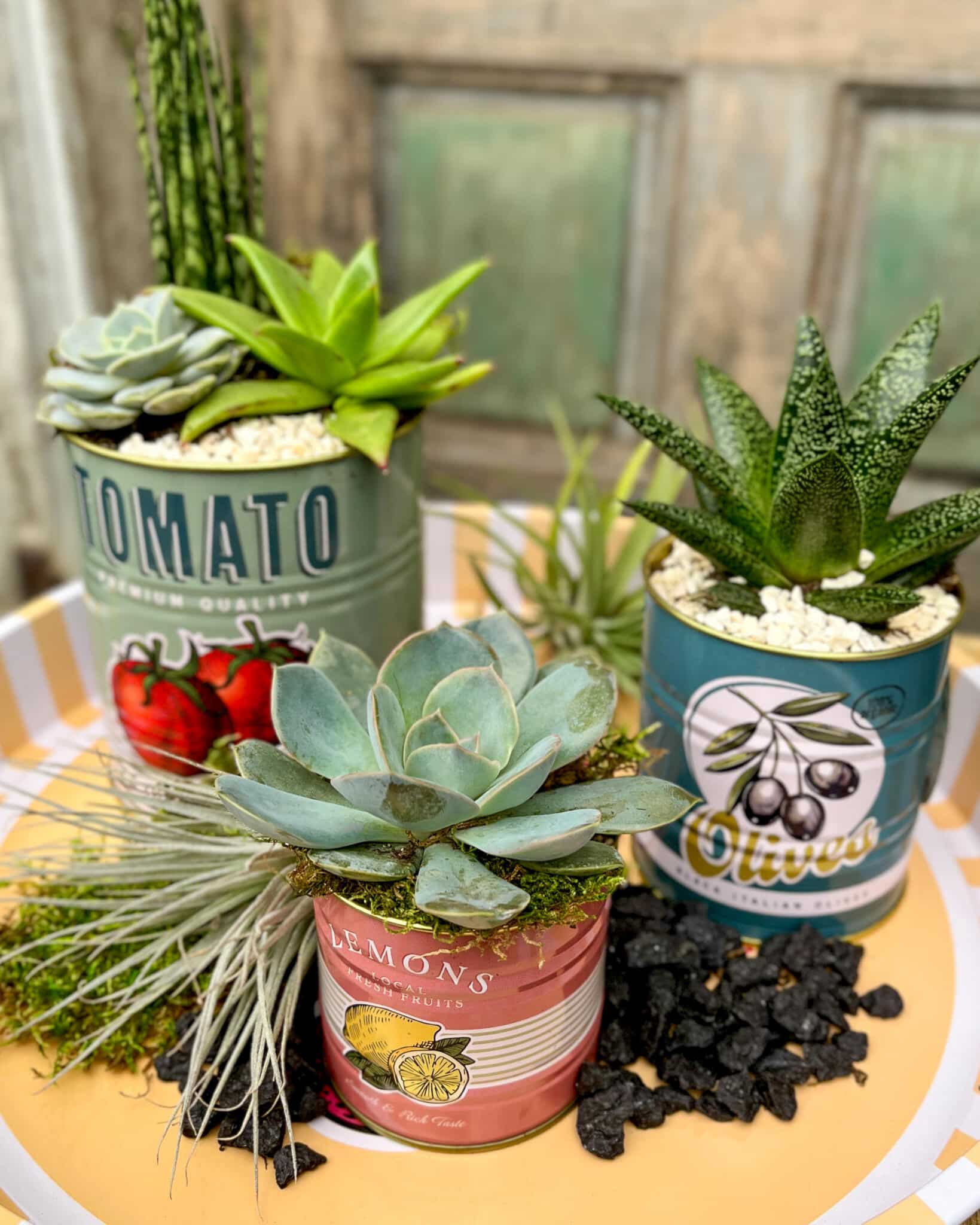 • Create a curated succulent arrangement using vintage-inspired European market tins