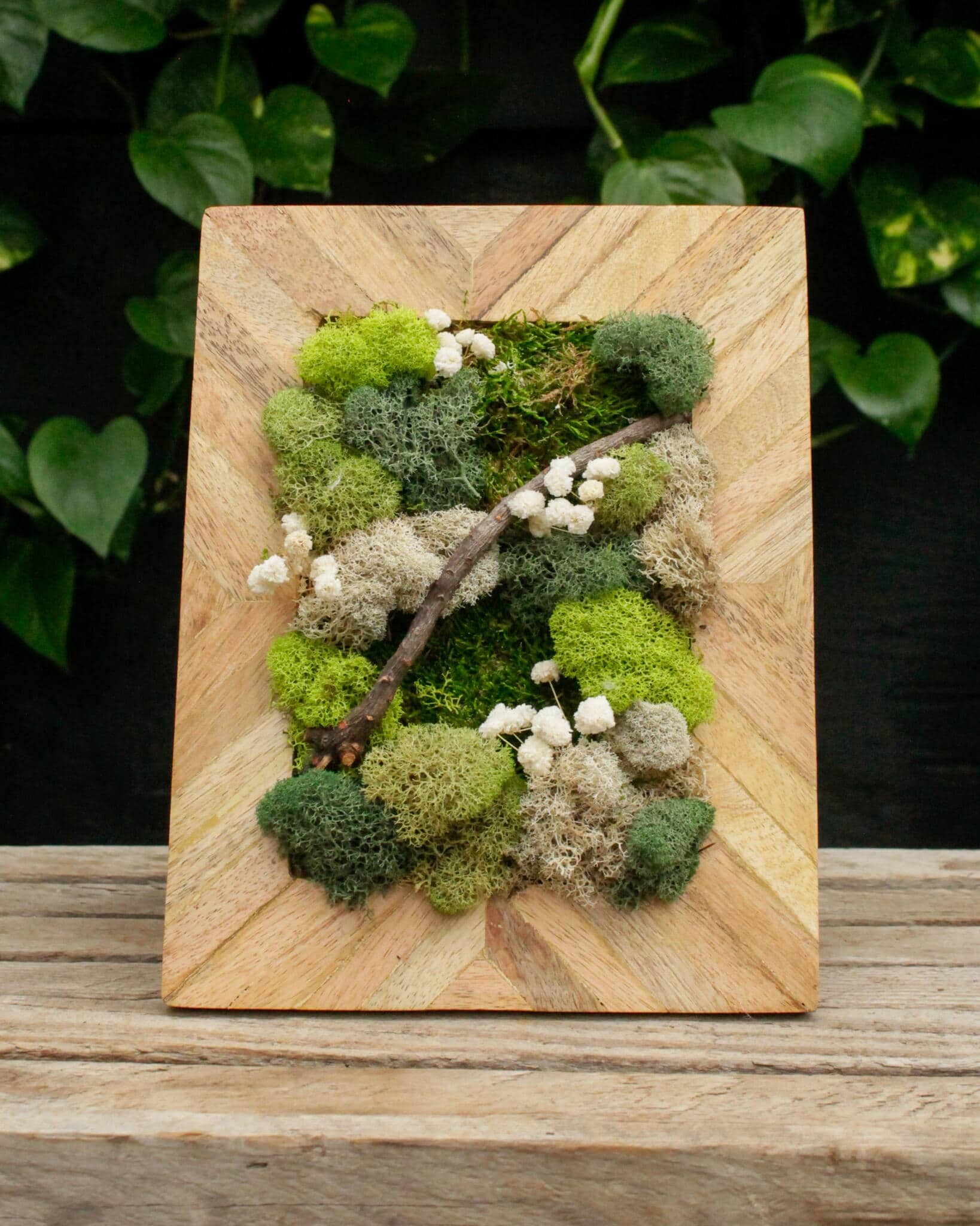 Mix and match shades of green reindeer moss, soft sheet moss, and decorative accents to design a one-of-a-kind natural masterpiece.