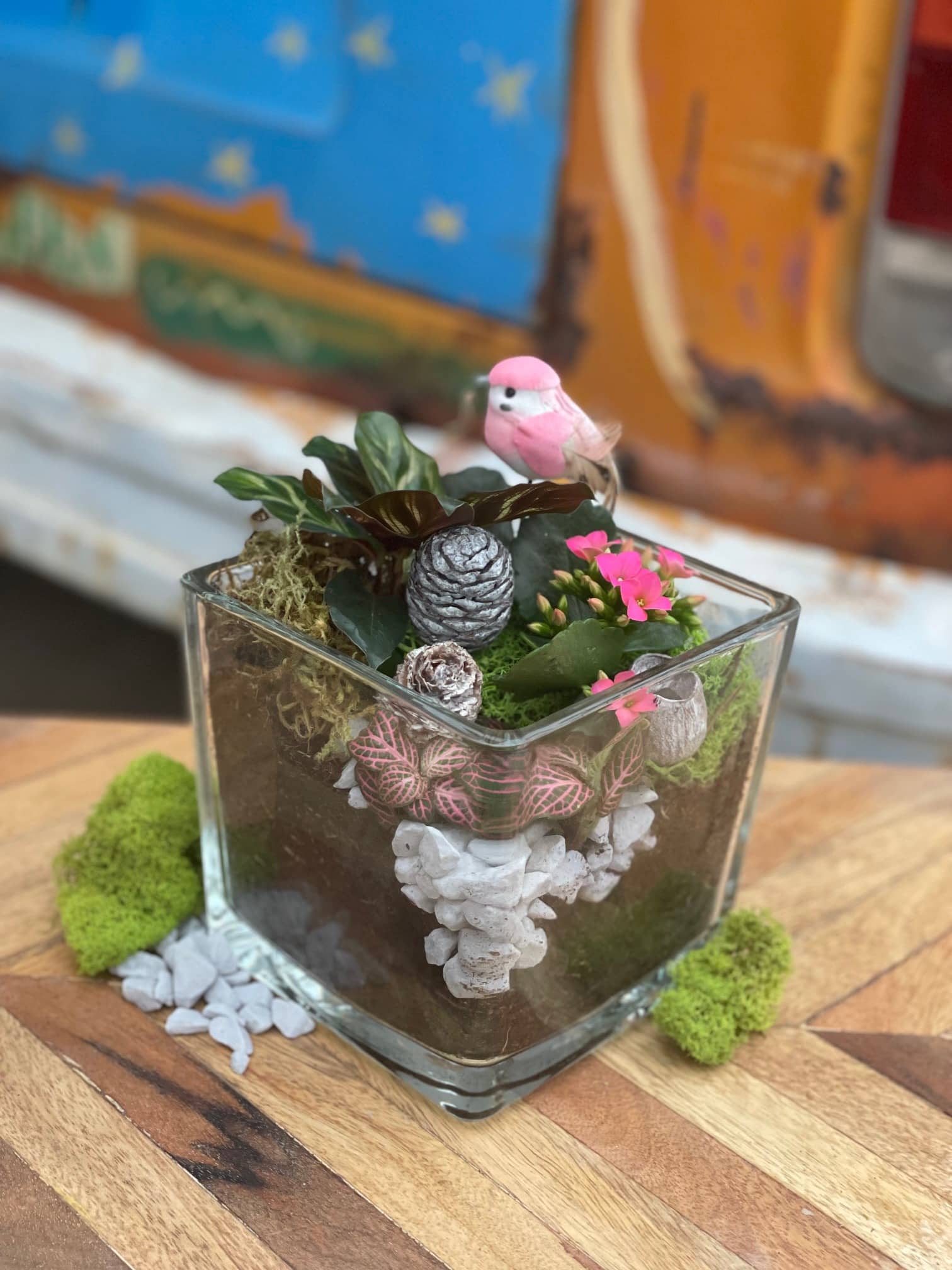 Layer moss, stones, and a variety of plants to design a fresh, living display that’s both calming and creative. Perfect for brightening a desk, shelf, or windowsill, it’s an easy way to bring nature indoors