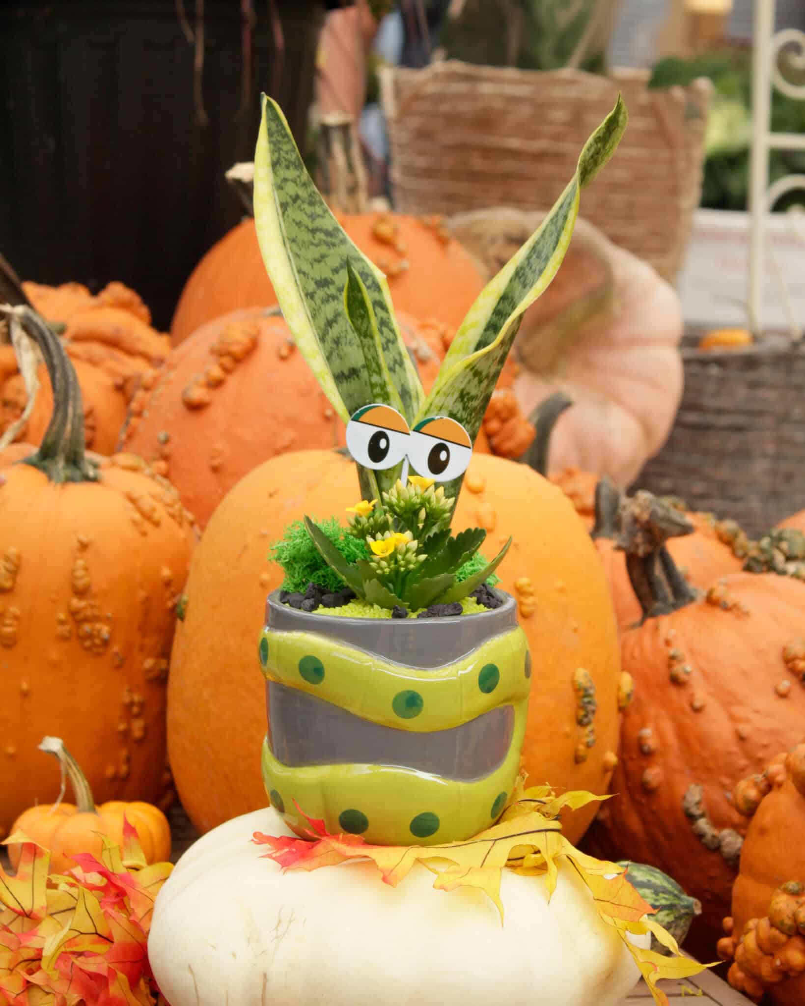 Slither into Halloween fun with this lime green snake-shaped planter! 🪴