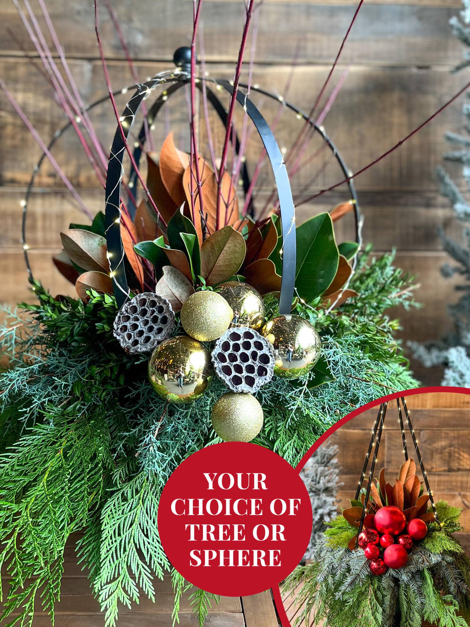 Your urn will include a vast selection of fresh winter greens like rich magnolia, fragrant cedar, boxwood and dogwood branches. Whether you love decorations in classic reds, shimmering golds, icy silvers, or playful pops of colour, your urn will be one-of-a-kind.